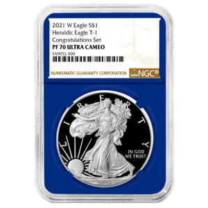 2021-W $1 1-oz T-1 Proof American Silver Eagle Congratulations Set NGC PF70UC Brown Label Blue Core