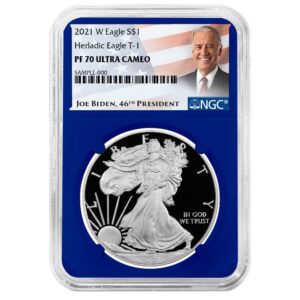 2021-W $1 1-oz T-1 Proof American Silver Eagle NGC PF70UC Biden Label Blue Core