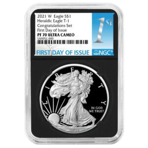 2021-W $1 1-oz T-1 Proof American Silver Eagle NGC PF70UC Brown Label Blue Core
