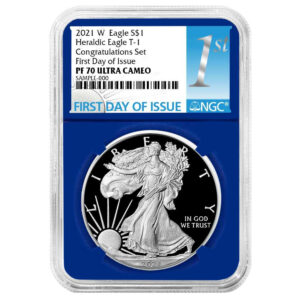 2021-W $1 1-oz T-1 Proof American Silver Eagle Congratulations Set NGC PF70UC FDI First Label Blue Core