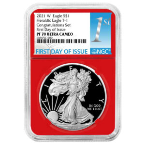 2021-W $1 1-oz T-1 Proof American Silver Eagle Congratulations Set NGC PF70UC FDI First Label Red Core