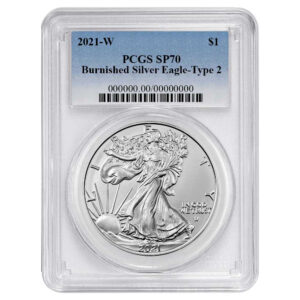 2021-W $1 1-oz T-2 Burnished American Silver Eagle PCGS SP70 Blue Label