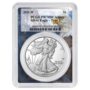 2021-W $1 1-oz T-2 Proof American Silver Eagle PCGS PR70DCAM FDOI Eagle Frame