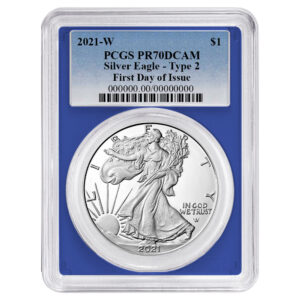 2021-W $1 1-oz T-2 Proof American Silver Eagle PCGS PR70DCAM FDOI Blue Label Blue Frame