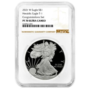 2021-W $1 1-oz T1 Proof American Silver Eagle Congratulations Set NGC PF70UC Brown Label