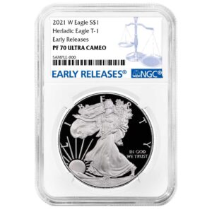 2021-W $1 1-oz T1 Proof American Silver Eagle NGC PF70UC FR Exclusive Eagle Label
