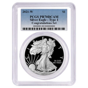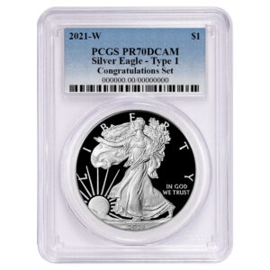 2021-W $1 1-oz T1 Proof American Silver Eagle Congratulations Set PCGS PR70DCAM Blue Label White Frame