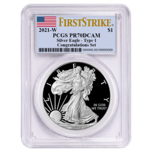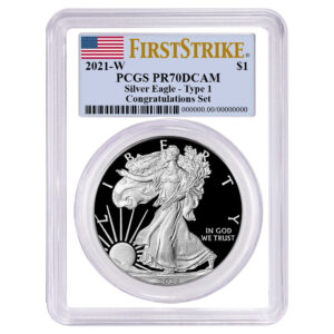 2021-W $1 1-oz T1 Proof American Silver Eagle Congratulations Set PCGS PR70DCAM Blue Label