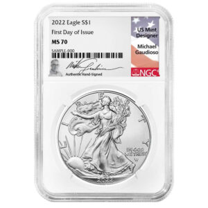 2022 $1 1-oz American Silver Eagle NGC MS70 FDI Michael Gaudioso Label