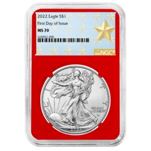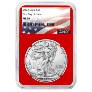 2022 $1 1-oz American Silver Eagle NGC MS70 FDI Flag Label Red Core