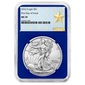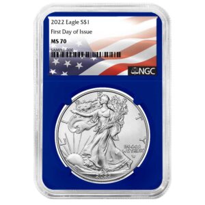 2022 $1 1-oz American Silver Eagle NGC MS70 FDI Flag Label Blue Core