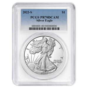 2022-S $1 1-oz Proof American Silver Eagle PCGS PR70DCAM Blue Label White Frame