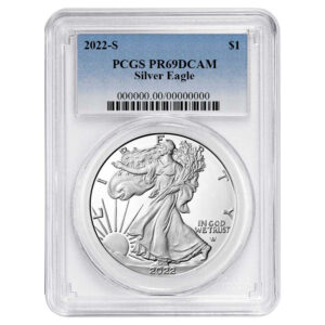 2022-S $1 1-oz Proof American Silver Eagle PCGS PR69DCAM Blue Label White Frame