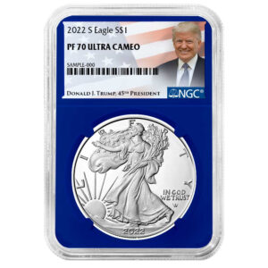 2022-S $1 1-oz Proof American Silver Eagle NGC PF70UC Trump Label Blue Core