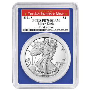 2022-S $1 1-oz Proof American Silver Eagle PCGS PR70DCAM FS San Francisco Label Blue Frame