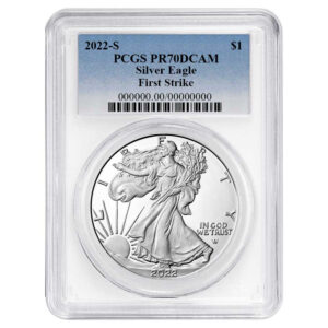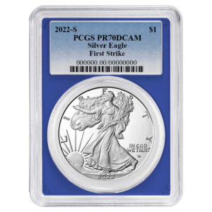 2022-S $1 1-oz Proof American Silver Eagle PCGS PR70DCAM FS Blue Label Blue Frame