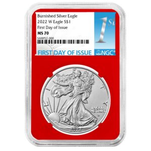 2022-W $1 1-oz Burnished American Silver Eagle NGC MS70 FDI First Label Red Core