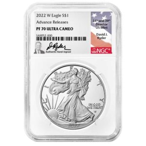 2022-W $1 1-oz Proof American Silver Eagle NGC PF70UC AR David Ryder Flag Signature Label