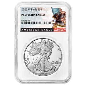 2022-W $1 1-oz Proof American Silver Eagle NGC PF69UC Brown Label Blue Core