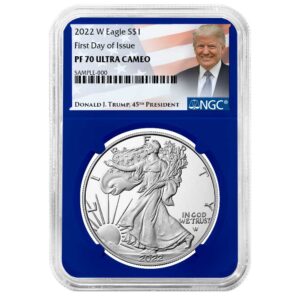 2022-W $1 1-oz Proof American Silver Eagle NGC PF70UC FDI Trump Label Blue Core