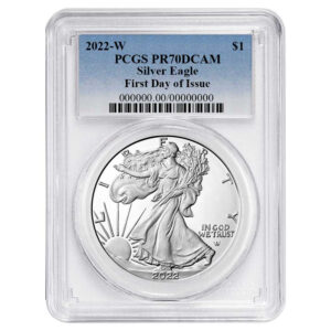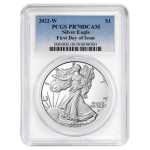 2022-W $1 1-oz Proof American Silver Eagle PCGS PR70DCAM FDOI Blue Label Blue Frame