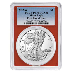 2022-W $1 1-oz Proof American Silver Eagle PCGS PR70DCAM FDOI Blue Label Red Frame