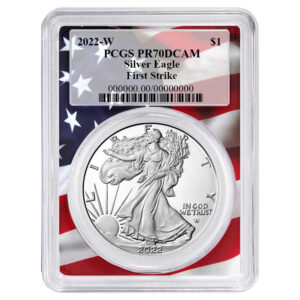 2022-W $1 1-oz Proof American Silver Eagle PCGS PR70DCAM FS Flag Label White Frame