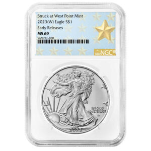 2023 (W) $1 1-oz American Silver Eagle NGC MS69 ER West Point Star Label Blue Core