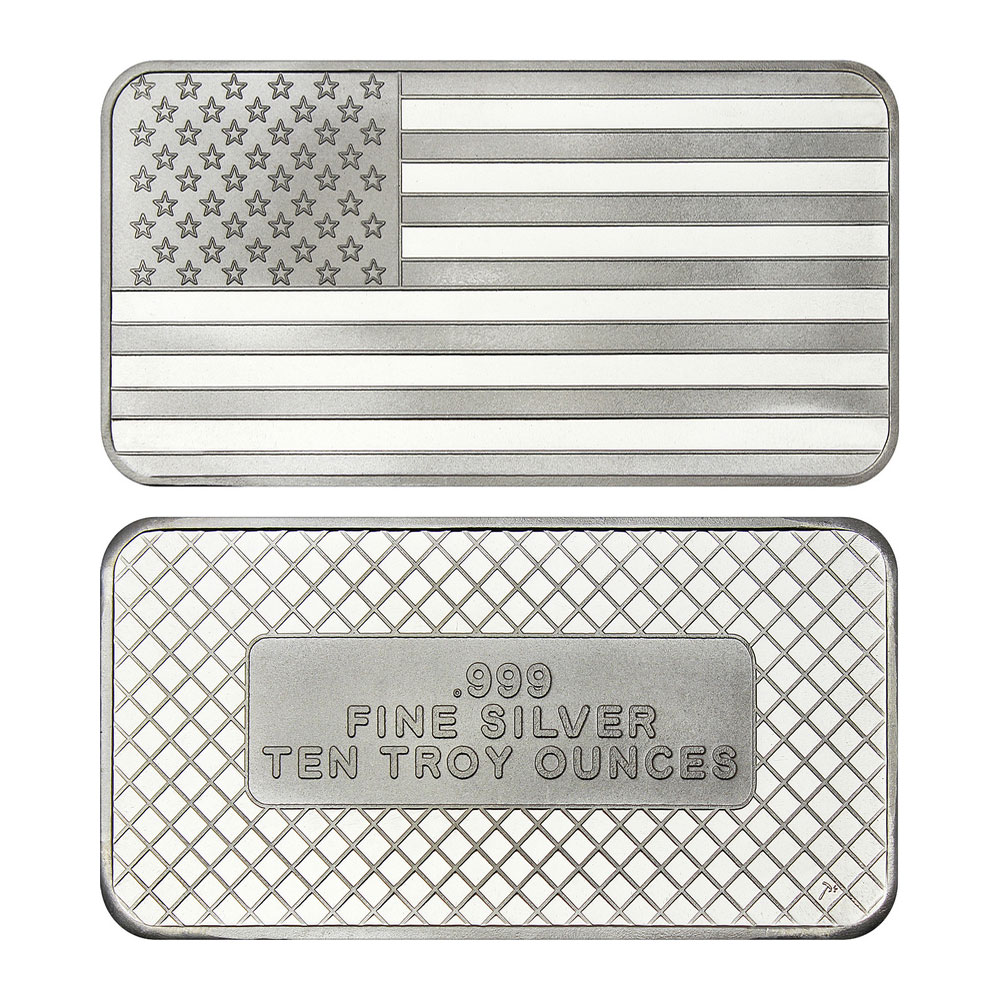 10-oz American Flag .999 Fine Silver Bar Sealed