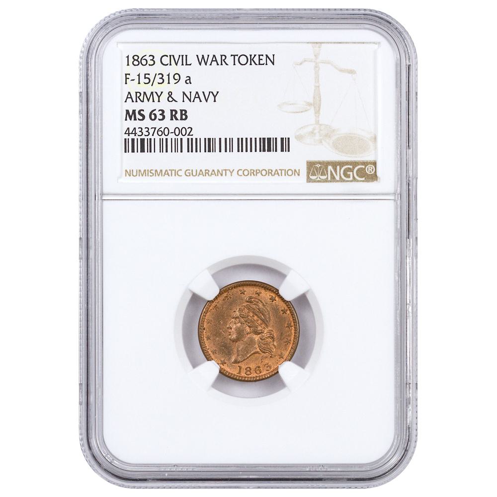 1863 United States Army & Navy Civil War Token NGC MS63 RB In Story Vault Holder
