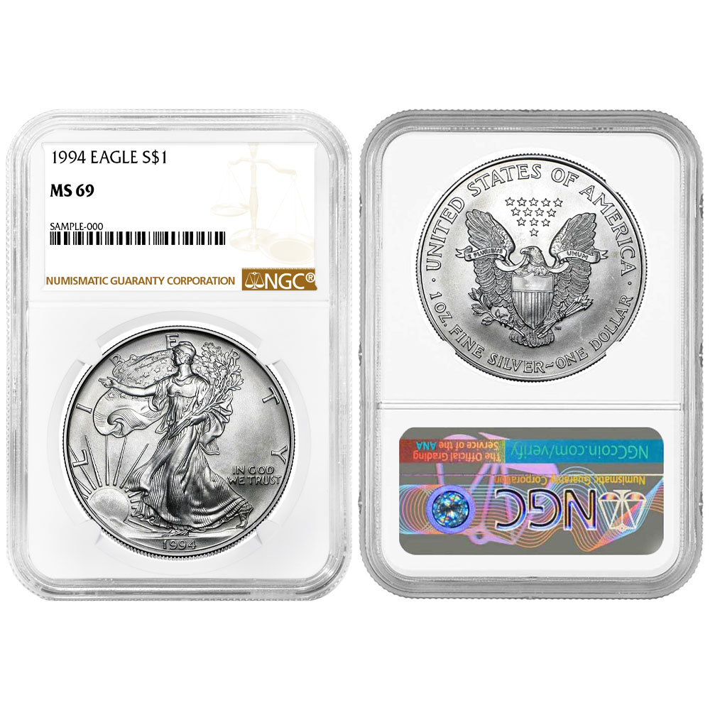 1994 $1 1-oz American Silver Eagle NGC MS69 Brown Label