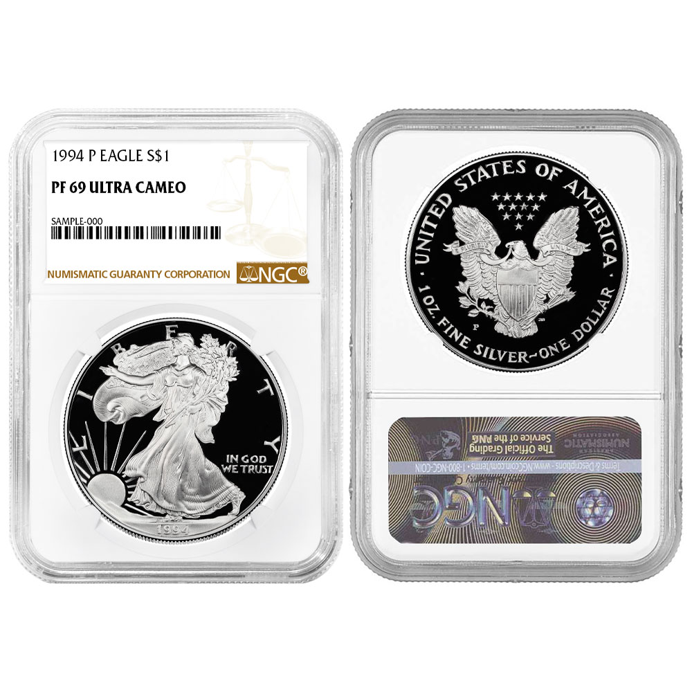 1994-P $1 1-oz Proof American Silver Eagle NGC PF69UC Brown Label