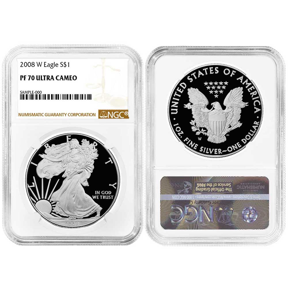 2008-W $1 1-oz Proof American Silver Eagle NGC PF70UC Brown Label