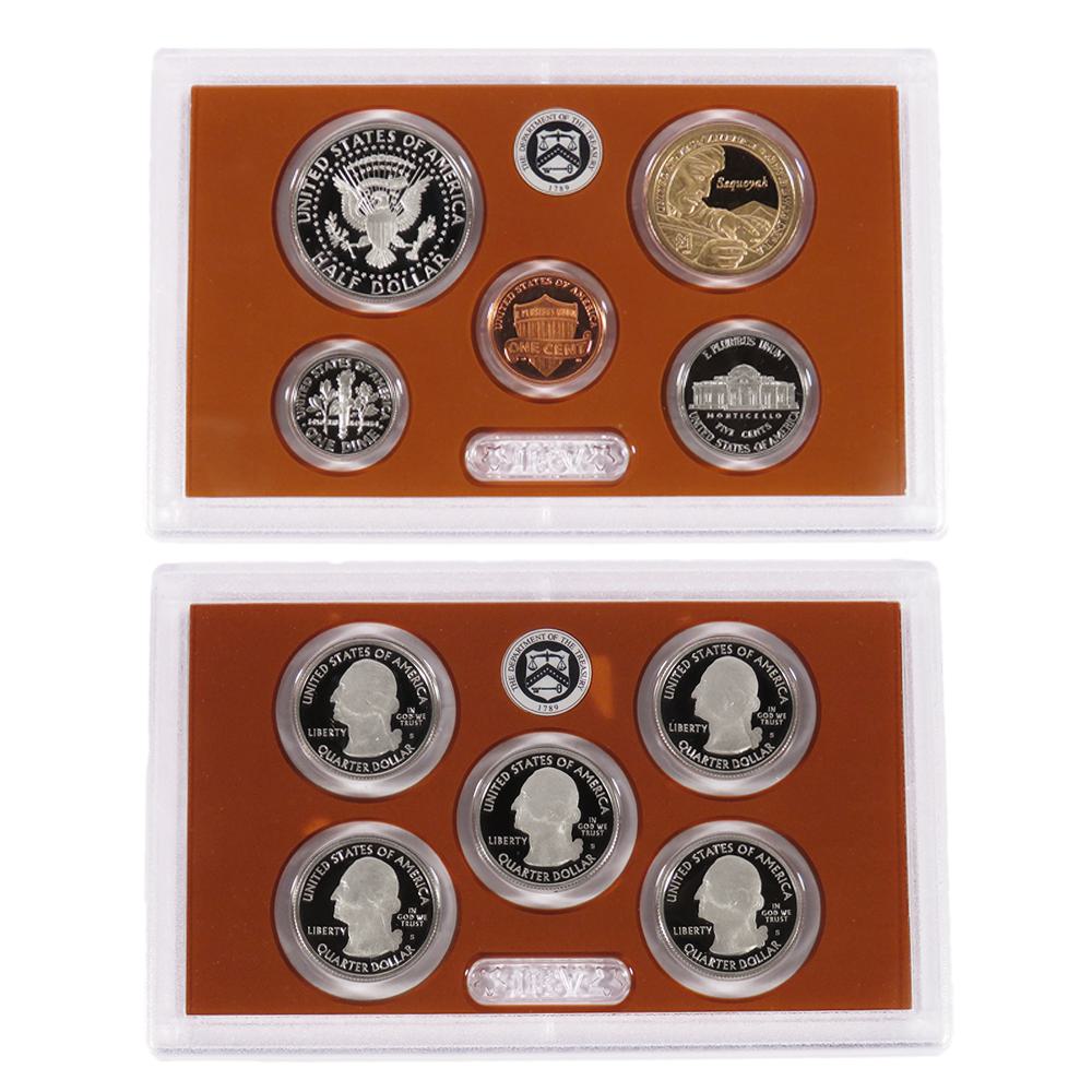 This 2017-S United States Clad Proof Set is a great choice for collectors who like both the designs on annual issue American coinage and the America the Beautiful Quarters Series. This set consists of ten coins, each of which bears the “S” Mint mark of the San Francisco Mint. Five of the coins bear the 2017 designs of the extremely popular America the Beautiful Program, while the other five include the Sacagawea dollar, the Kennedy half dollar, the Roosevelt dime, the Jefferson nickel, and the Lincoln cent.