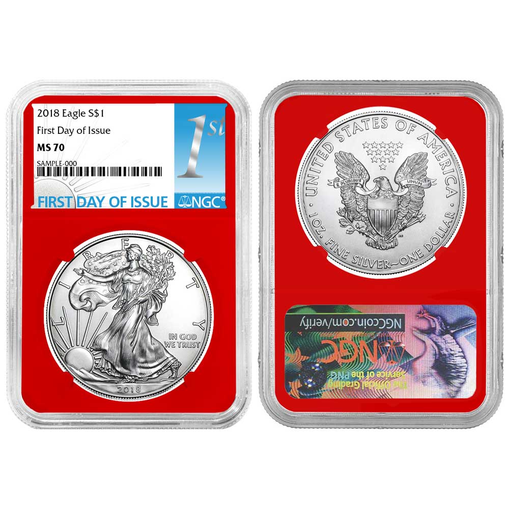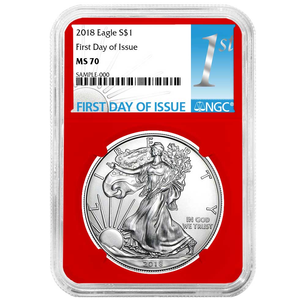 2018 $1 1-oz American Silver Eagle NGC MS70 FDI First Label Red Core