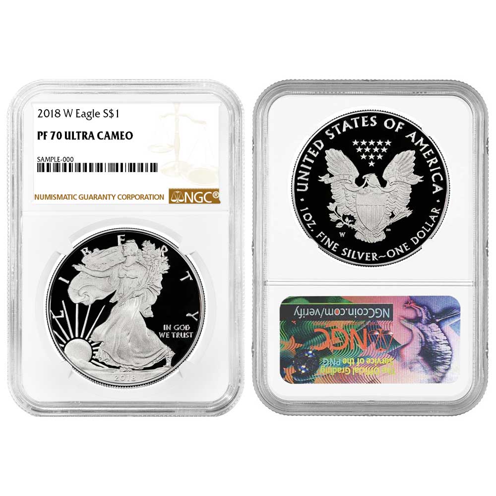 2018-W $1 1-oz Proof American Silver Eagle NGC PF70UC Brown Label