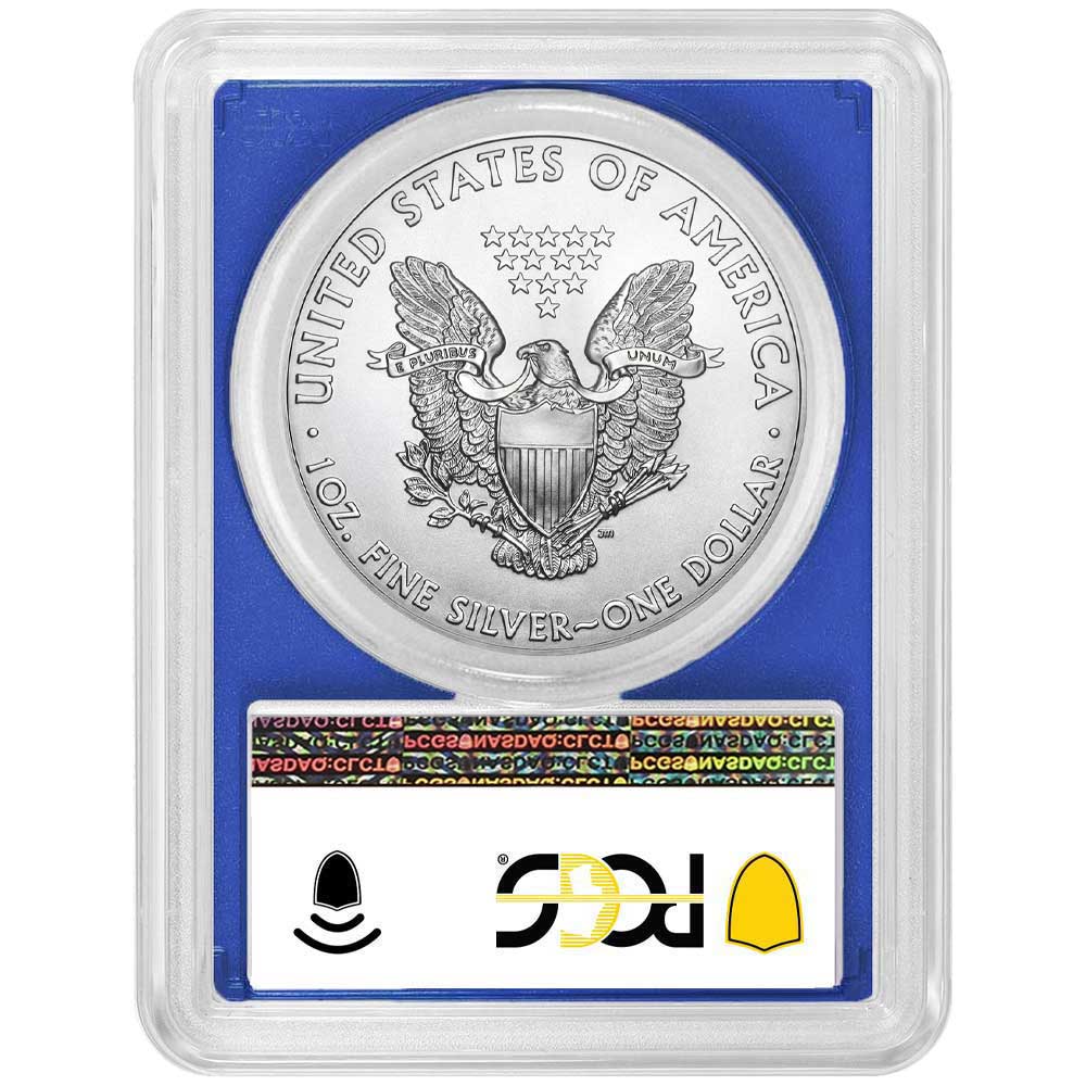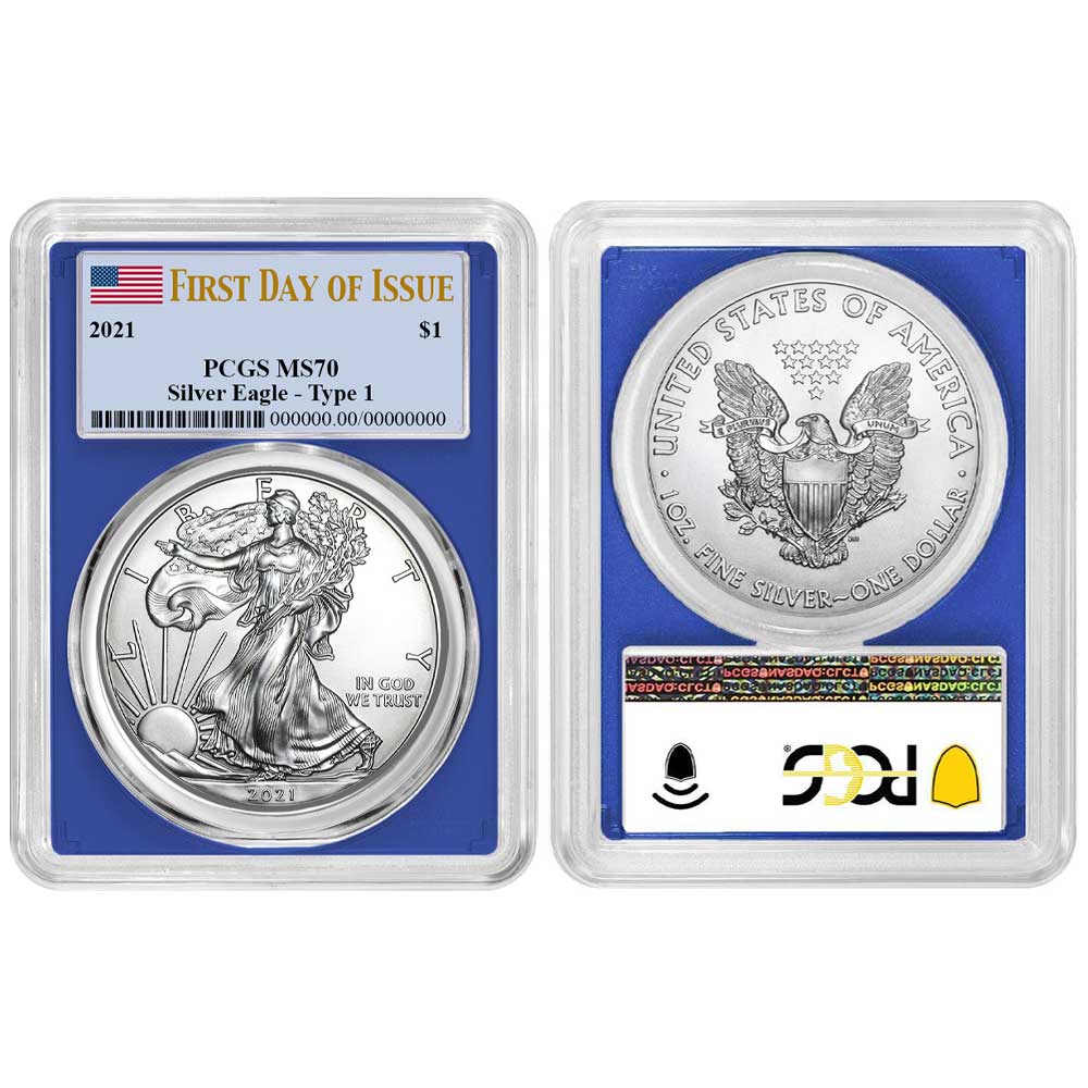 2021 $1 1-oz T-1 American Silver Eagle PCGS MS69 FDOI Flag Label Blue Frame