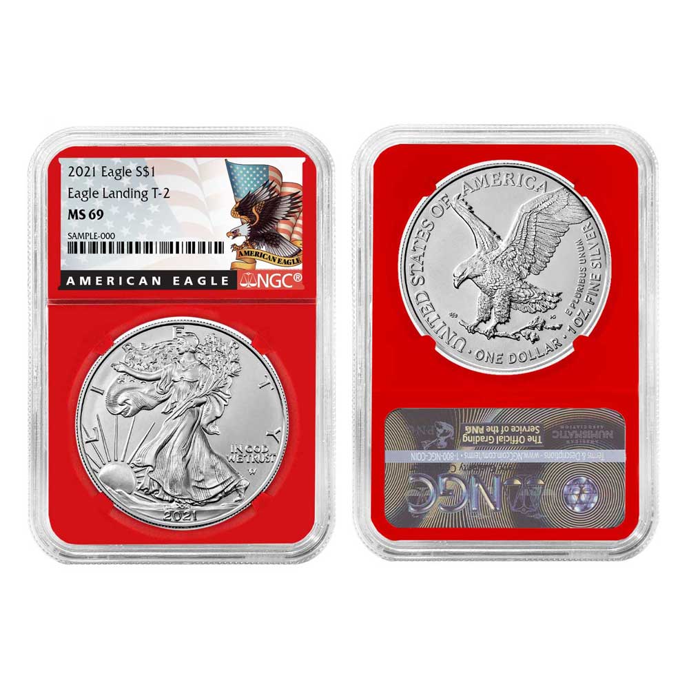2021 $1 1-oz T-2 American Silver Eagle NGC MS69 Black Label Red Core