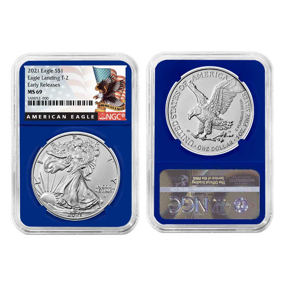2021 $1 1-oz T-2 American Silver Eagle NGC MS69 ER Black Label Blue Core