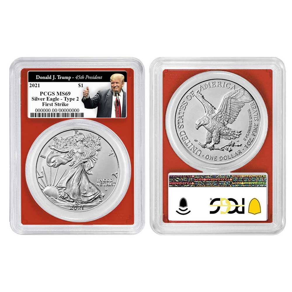 2021 $1 1-oz T-2 American Silver Eagle PCGS MS69 FS Trump 45th President Label Red Frame