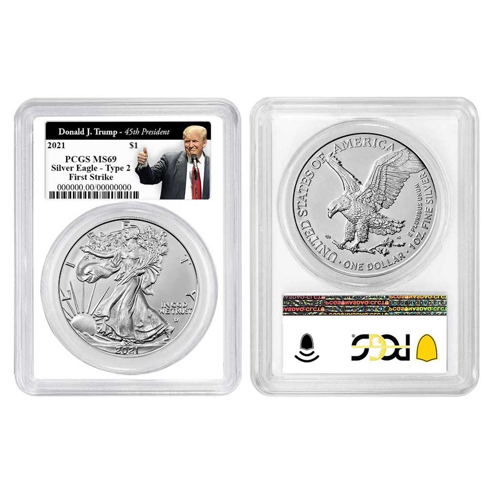 2021 $1 1-oz T-2 American Silver Eagle PCGS MS69 FS Trump 45th President Label White Frame