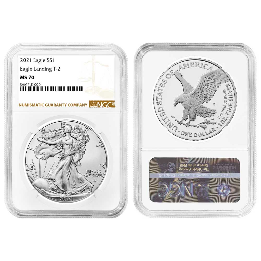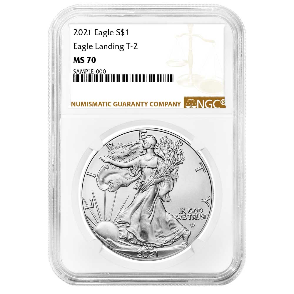 2021 $1 1-oz T2 American Silver Eagle NGC MS70 Brown Label