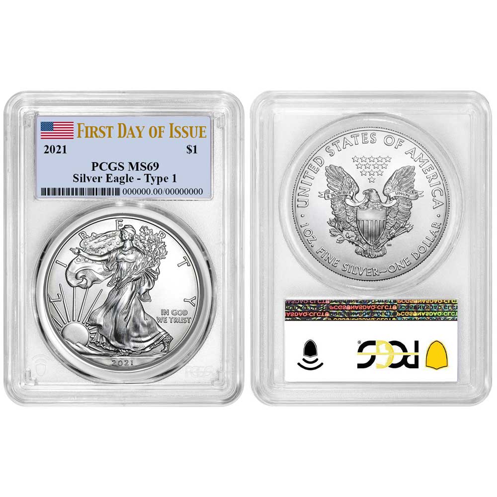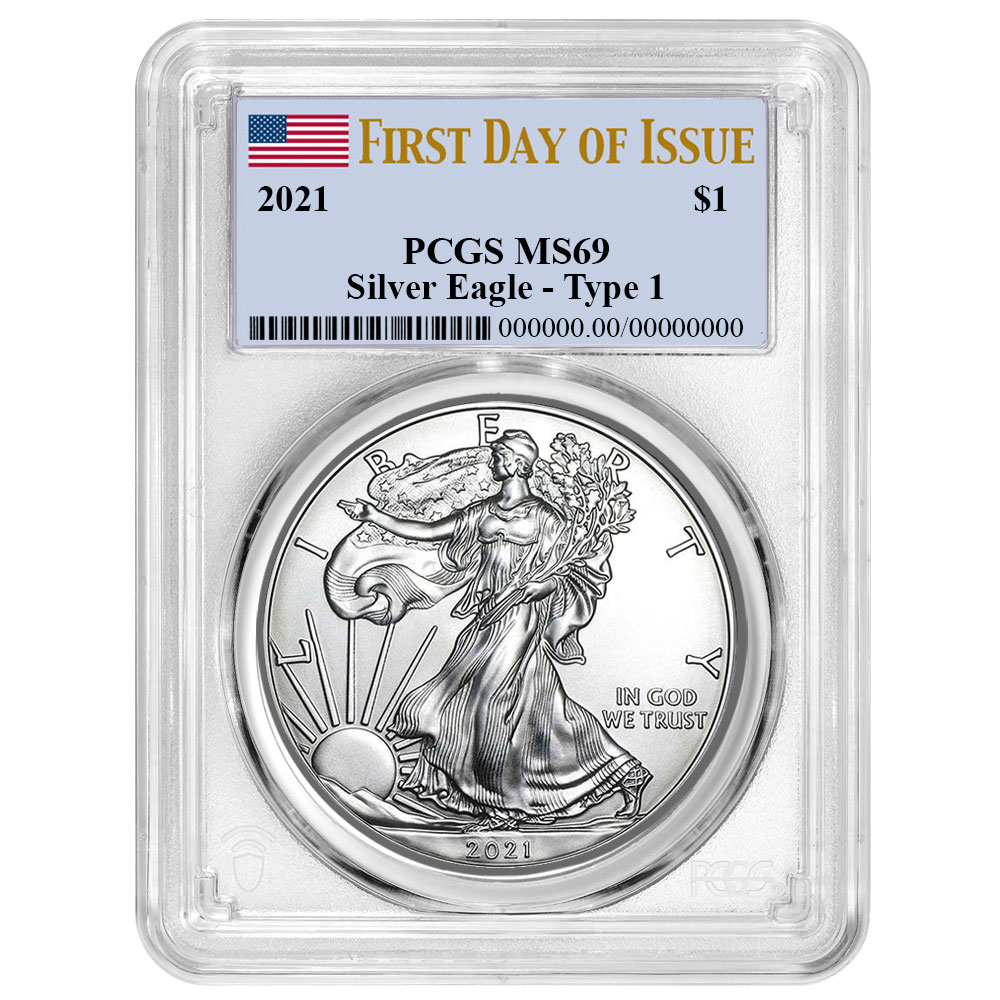 2021 $1 1-oz T1 American Silver Eagle PCGS MS69 FDI Flag Label