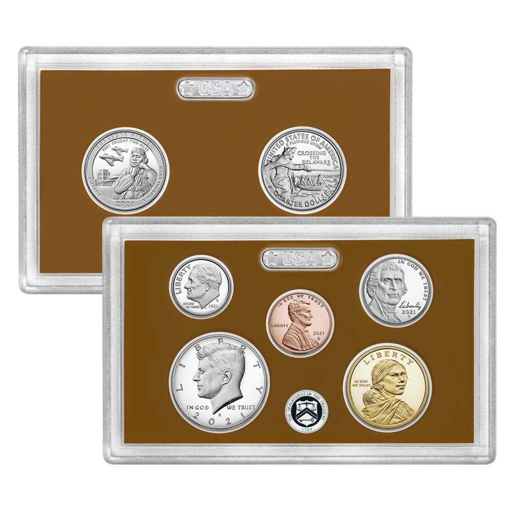 The U.S. Mint’s annually issued Proof Coin Set traditionally features an assembly of the circulating coinage of the release year, struck with a collectible proof finish at the San Francisco Mint. The 2021 set is significantly different that those issued in the past few decades, as it contains just two quarters. The first quarter, which honors the Tuskegee Airmen National Historic Site in Alabama is notably the 56th and final release of the America the Beautiful Quarters series. The second quarter, the only other quarter style to be issued in 2021, represents the introduction of the General George Washington Crossing the Delaware Quarter, which celebrates the historic event of the American Revolutionary War that occurred on a frigid December night in 1776.