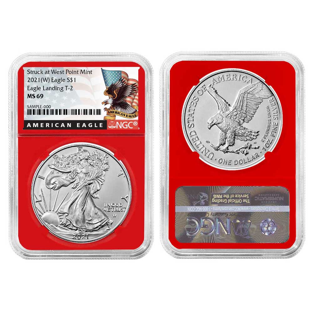 2021 (W) $1 1-oz T-2 American Silver Eagle NGC MS69 Black Label Red Core