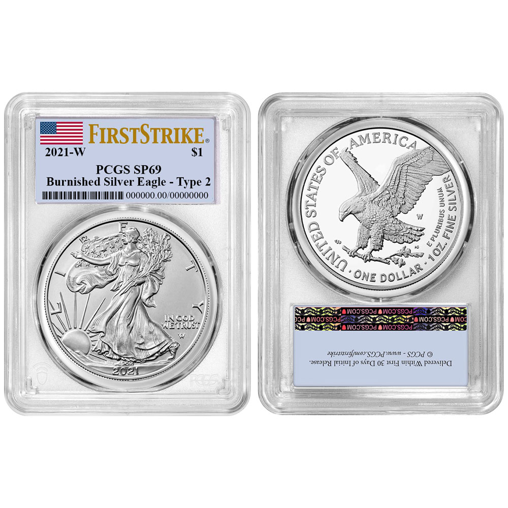2021-W $1 1-oz T2 Burnished American Silver Eagle PCGS SP69 FS Flag Label