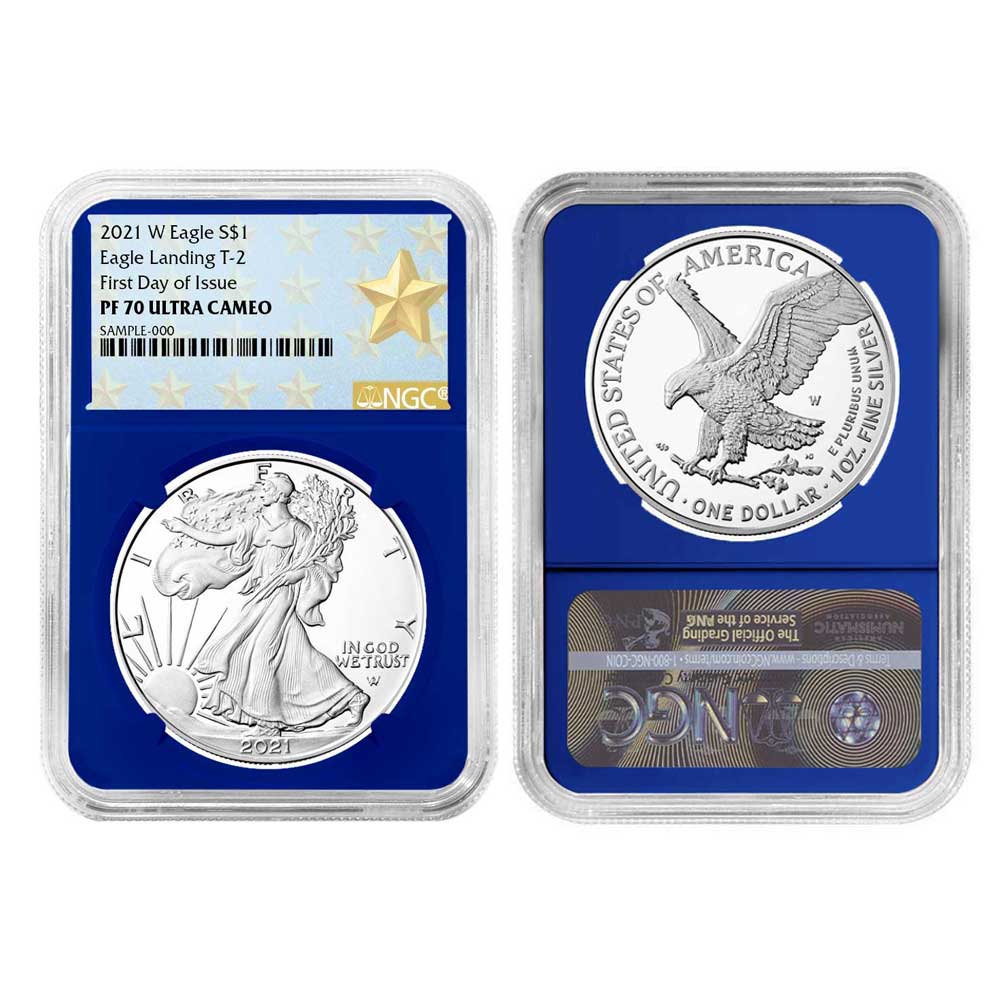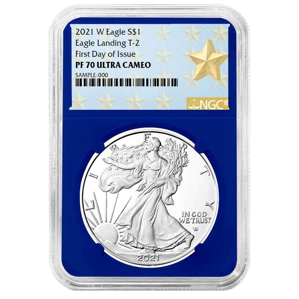 2021-W $1 1-oz T-2 Proof American Silver Eagle NGC PF70UC FDI West Point Star Label Blue Core