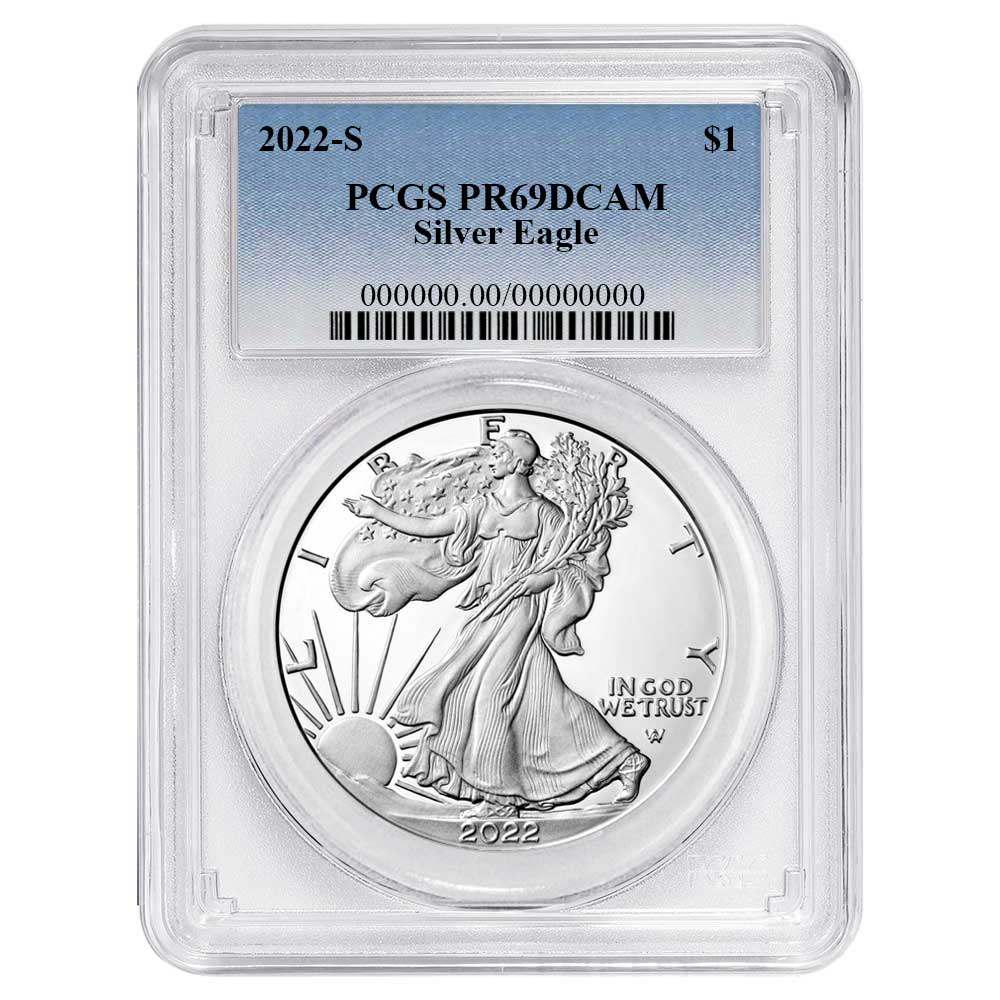 2022-S $1 1-oz Proof American Silver Eagle PCGS PR69DCAM Blue Label