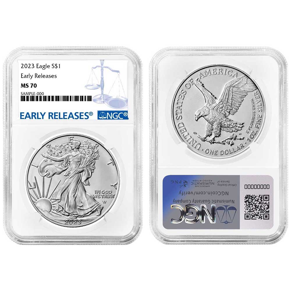 2023 $1 1-oz American Silver Eagle NGC MS70 ER Blue Label