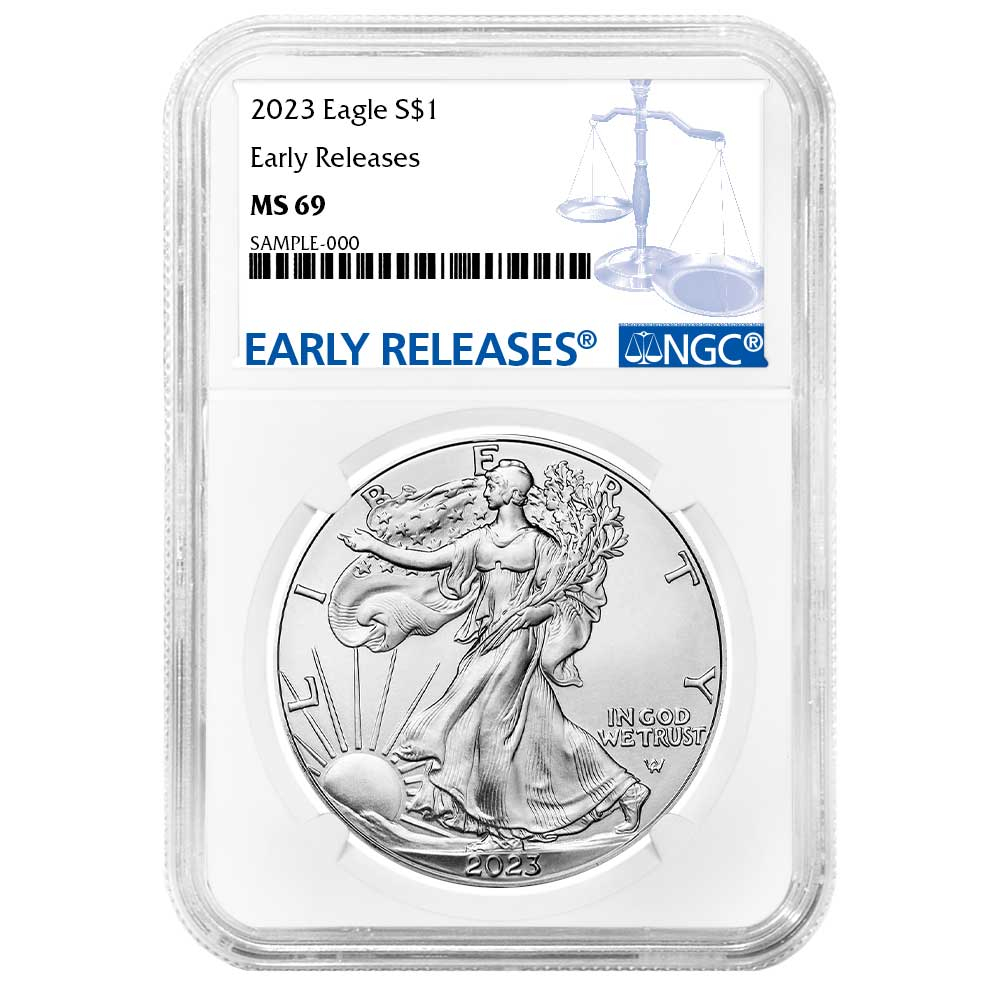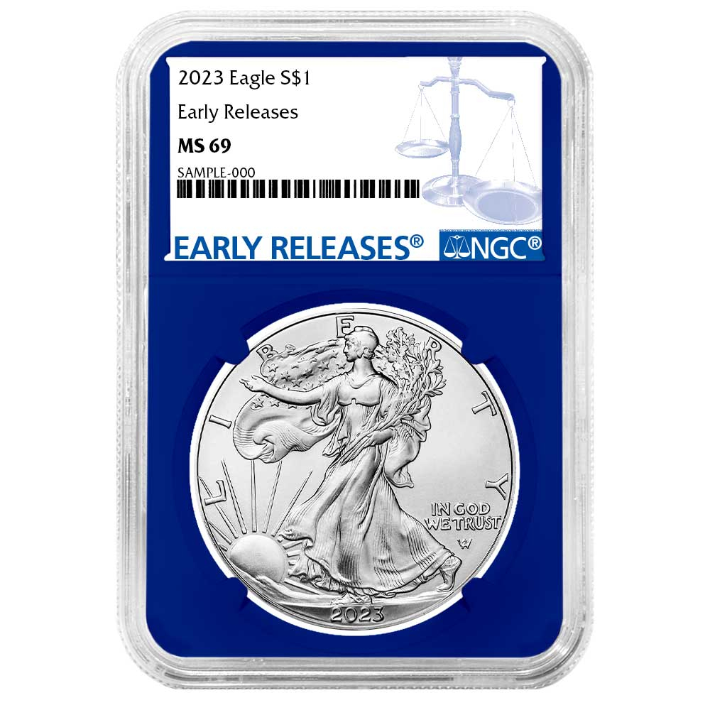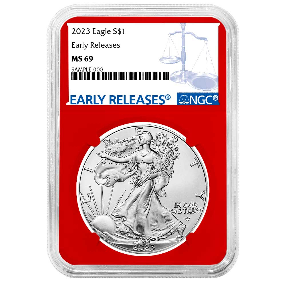 3pc Set – 2023 $1 1-oz American Silver Eagle NGC MS69 ER Blue Label Red White Blue